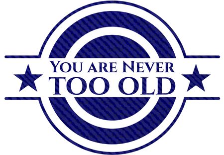 You are Never too old jean or denim emblem or badge background