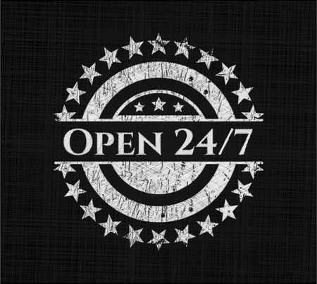 Open 24/7 written on a chalkboard