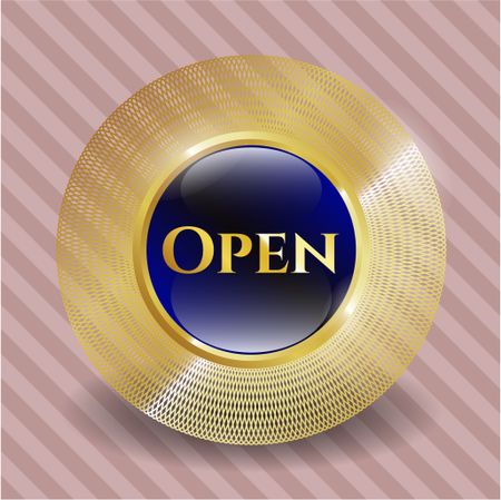 Open blue shiny badge with pink background