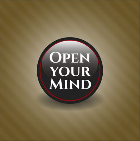 Open your Mind black emblem or badge, retro style