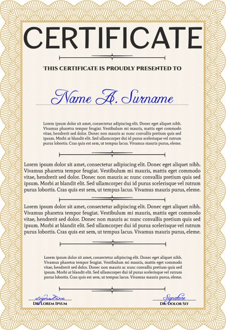 Orange Certificate. Detailed. Printer friendly. Complex design.
