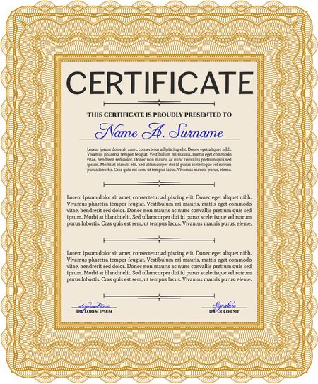 Orange Certificatem diplmoa or award template. Design template. Money style design. With guilloche pattern.