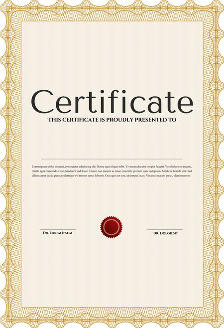 Orange Diploma template. Border, frame. Excellent design. With background.