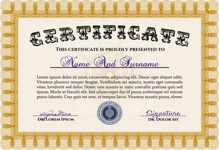 Orange Diploma template or certificate template. With quality background. Beauty design. Vector pattern that is used in money and certificate.