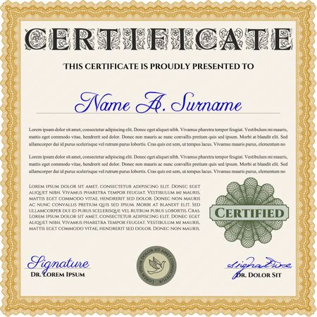 Orange Diploma template or certificate template. With quality background. Beauty design. Vector pattern that is used in money and certificate.
