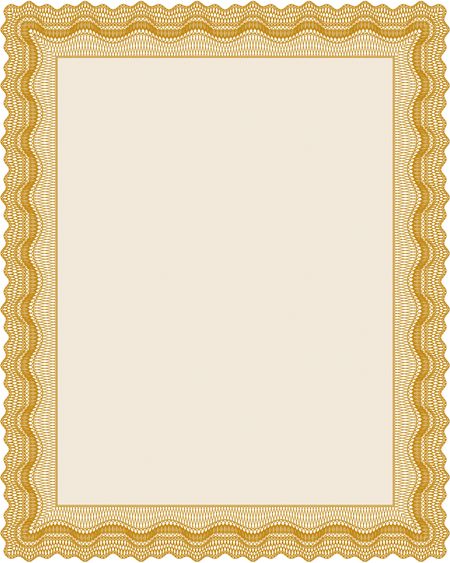Orange Sample Diploma. With linear background. Modern design. Frame certificate template Vector.