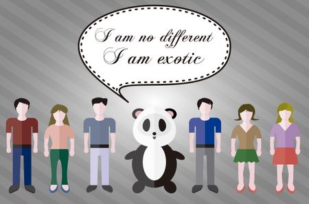 Panda saying "I am no different, I am exotic" with more people around, Tolerance and diversity funny card or poster