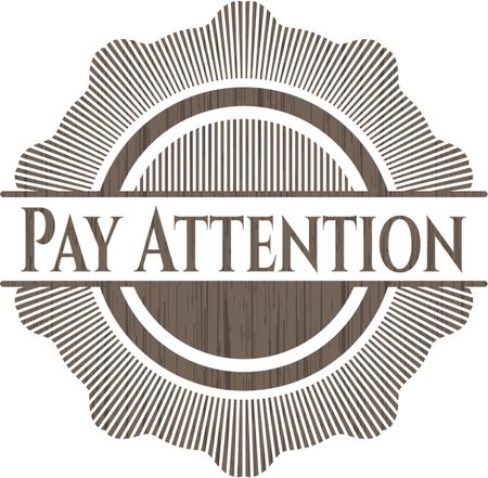 Pay Attention vintage wood emblem