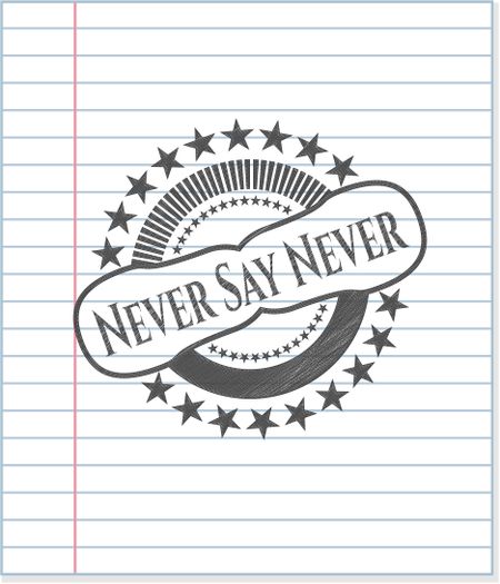 Never Say Never pencil strokes emblem