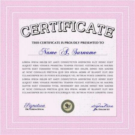 Pink Certificate or diploma template. Border, frame. Good design. With background.