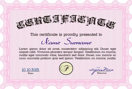Pink Certificate. Printer friendly. Complex design. Detailed.
