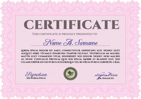 Pink Certificate template. Easy to print. Customizable, Easy to edit and change colors. Cordial design.