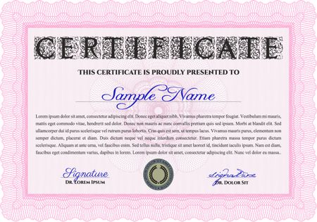 Pink Classic Certificate template. Award. Money Pattern. With great quality guilloche pattern.