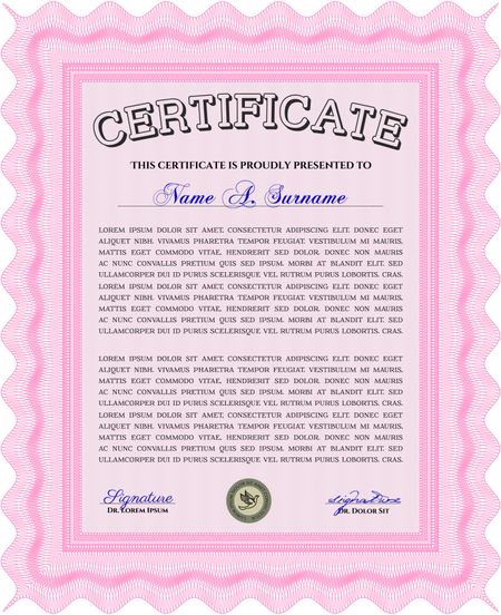 Pink Classic Certificate template. Money Pattern design.