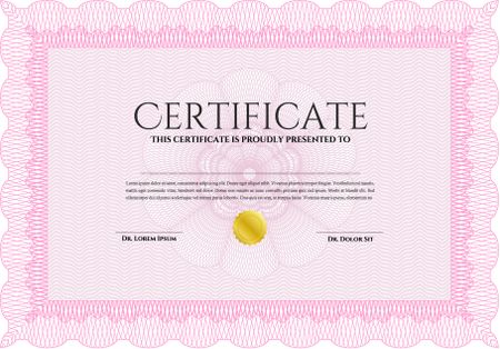Pink Diploma or certificate template. Complex background. Vector pattern that is used in currency and diplomas.Superior design.