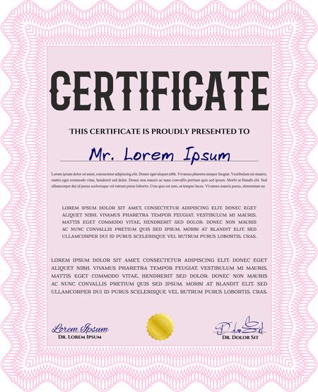 Pink Diploma template. With background. Excellent design. Border, frame.