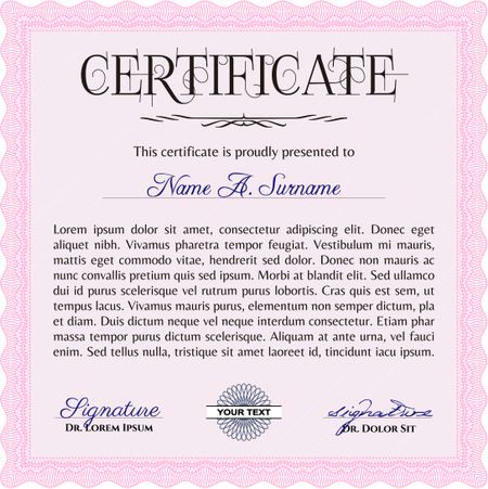 Pink Diploma template or certificate template. Artistry design. With quality background. Vector pattern that is used in money and certificate.