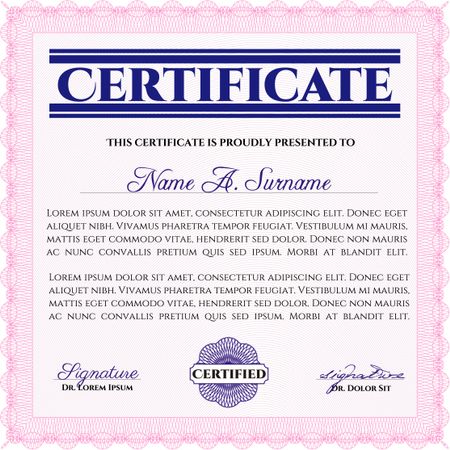 Pink Sample Certificate. Frame certificate template Vector. Modern design. With linear background.