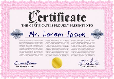 Pink Sample Certificate. With quality background. Artistry design. Vector pattern that is used in money and certificate.