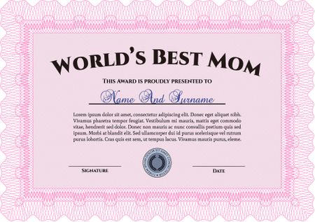 Pink world's best mom award template