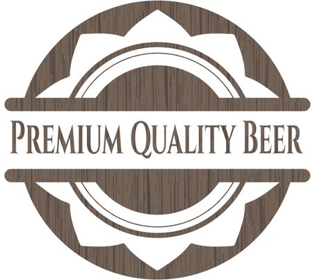 Premium Quality Beer badge with wooden background