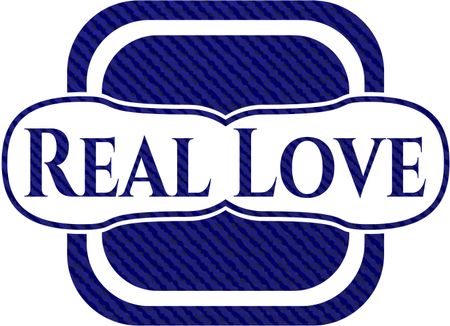 Real Love badge with denim texture