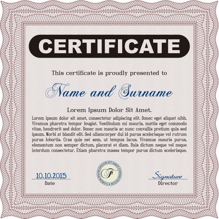 Red Certificate. Detailed. Complex design. Printer friendly.