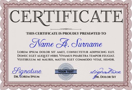 Red Certificate. Detailed. Complex design. Printer friendly.