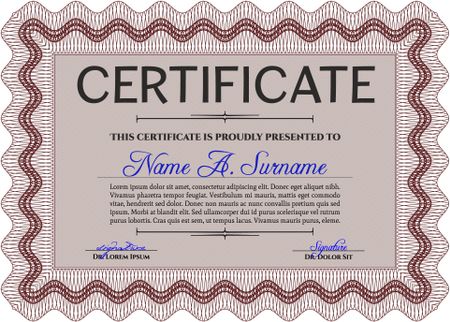 Red Certificate. Detailed. Printer friendly. Complex design.