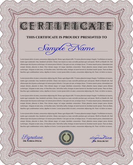 Red Certificate template. Detailed. Nice design. Printer friendly.