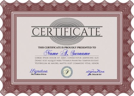 Red Certificate template or diploma template. Beauty design. Vector pattern that is used in currency and diplomas.Complex background.