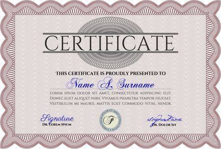 Red Certificate template or diploma template. Complex background. Vector pattern that is used in currency and diplomas.Superior design.