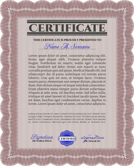Red Classic Certificate template. With great quality guilloche pattern. Money Pattern design. Award.