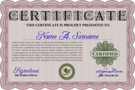 Red Diploma. With background. Good design. Border, frame.