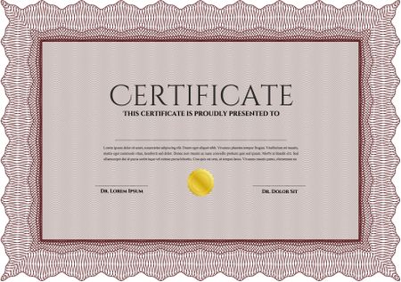 Red Diploma or certificate template. With complex background. Lovely design. Vector illustration.