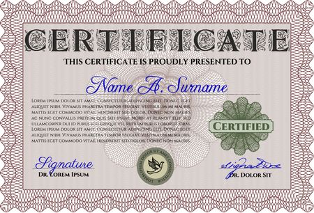 Red Diploma or certificate template. With complex background. Vector illustration. Lovely design.