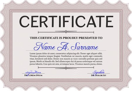 Red Diploma template. Lovely design. Vector illustration. With complex background.