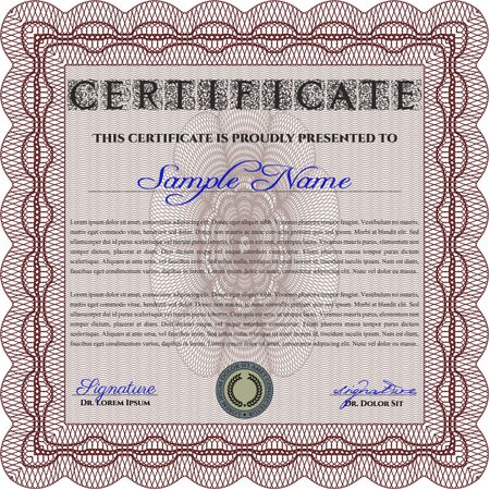 Red Sample Certificate. Frame certificate template Vector. Modern design. With linear background.