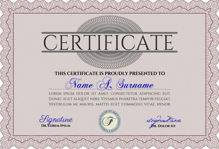 Red Sample Certificate. With quality background. Artistry design. Vector pattern that is used in money and certificate.