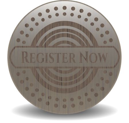 Register Now retro style wood emblem