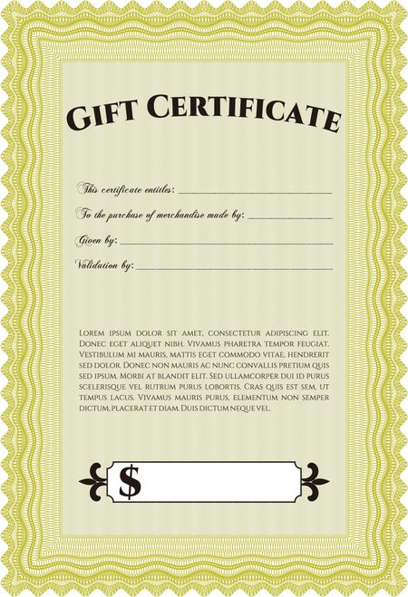 Retro Gift Certificate. With background. Cordial design. Detailed.