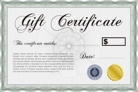 Retro Gift Certificate. Lovely design. With linear background. Border, frame.