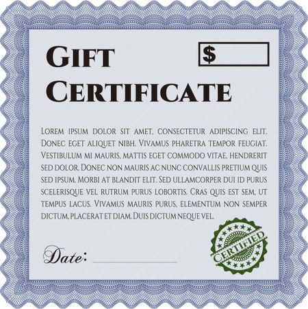 Retro Gift Certificate template. Beauty design. Border, frame.With guilloche pattern.