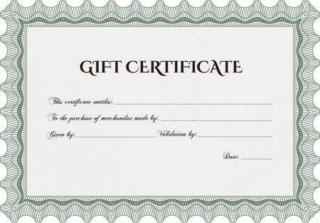Retro Gift Certificate template. Beauty design. Border, frame. With linear background.
