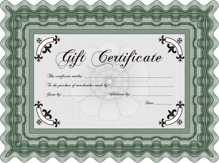 Retro Gift Certificate template. Border, frame.Beauty design. With guilloche pattern and background.