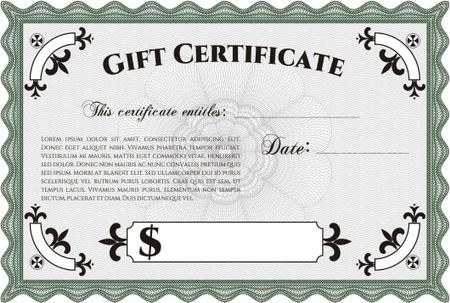 Retro Gift Certificate template. Printer friendly. Excellent design. Vector illustration.