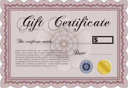 Retro Gift Certificate template. Superior design. Detailed.With complex linear background.