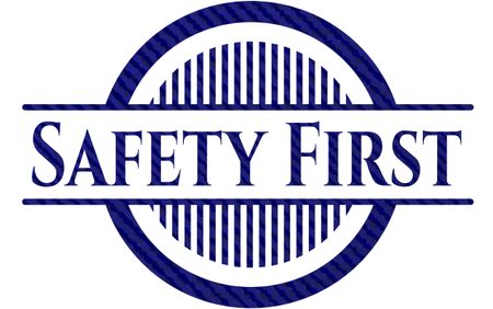 Safety First emblem with denim high quality background
