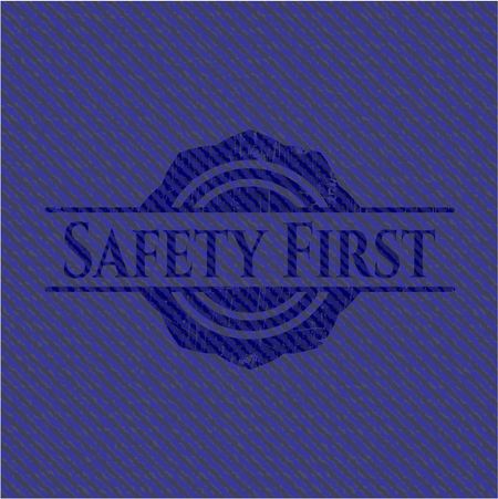 Safety First emblem with jean background