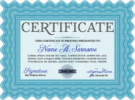 Sample Certificate. Artistry design. Vector pattern that is used in money and certificate. With quality background. Light blue color.